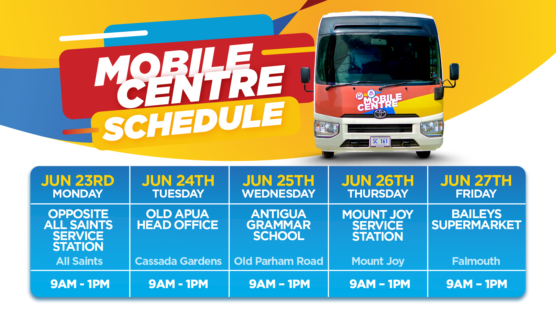 Mobile Center Schedule - 30th June to 4th July 2025