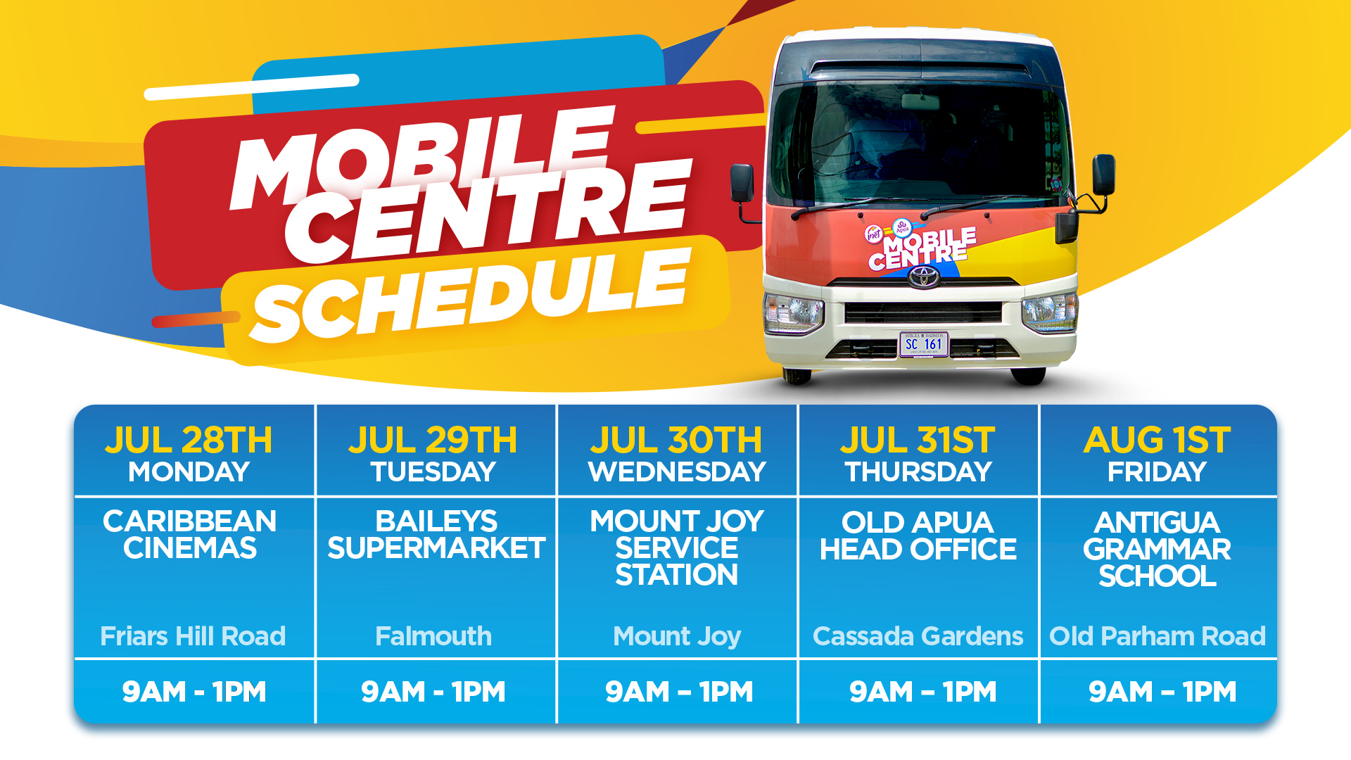 Mobile Center Schedule - 4th Aug to 8th Aug 2025