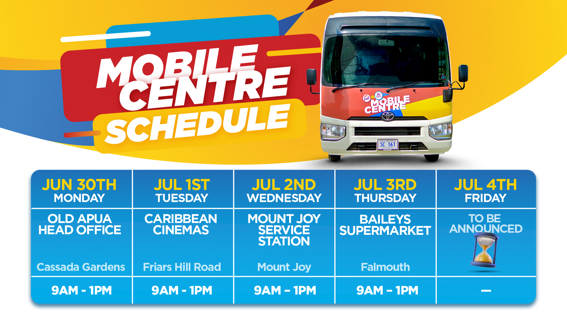 Mobile Center Schedule - 23rd June to 27th June 2025