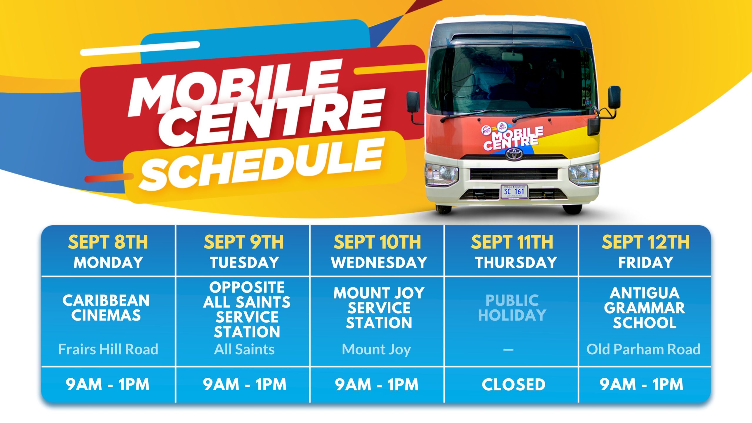 Mobile Center Schedule - 1st September to 5th September 2025