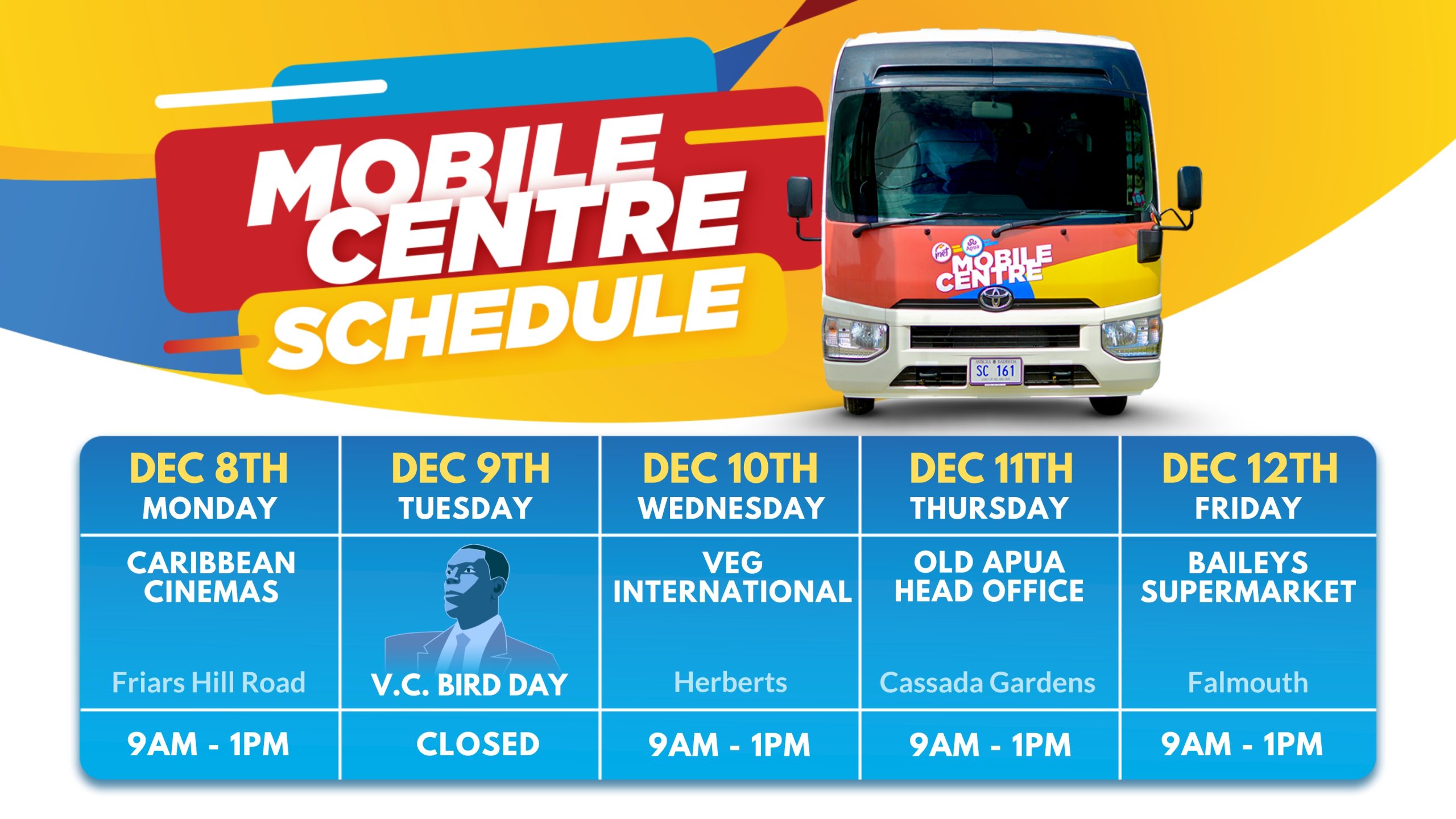 Mobile Center Schedule - December 1st to December 5th 2025