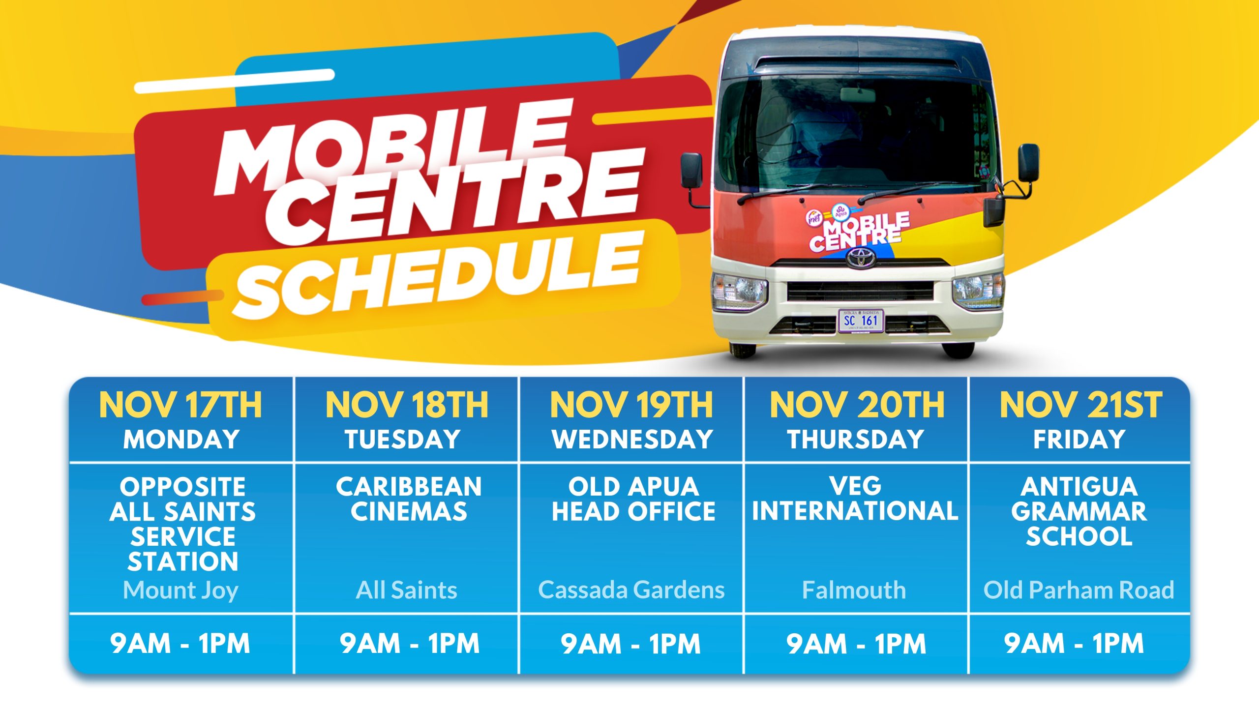 Mobile Center Schedule - November 10th to November 14th 2025