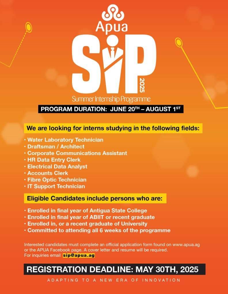 APUA boasts of hosting the Caribbean’s most prestigious Summer Internship Programme (SIP), offering tertiary level students a practical job experience in their field of study. Our annual 6 week work experience and life skills programme usually runs between the months of June and July. We select a small group of applicants who are enrolled in their final year of tertiary education or have recently graduated to participate. In an effort to assist in the professional development of every applicant, all are invited to interview on the Open Day which gives them valuable experience in interviewing. To get better at something, you should do it often. The Open Day provides an opportunity to for applicants to experience and to improve on interviewing skills. Successful applicants from the interview pool are then offered a position in our summer internship program, the most prestigious in the Caribbean.